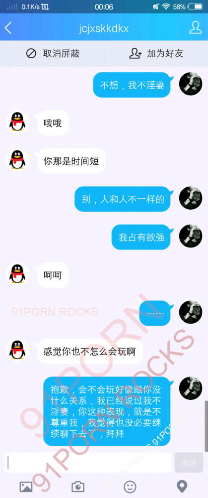挂一个sb,觉得聊不来,非常礼貌地表示了回绝,结果跑到我的空间动态下面破口大骂,说玩过我媳妇,抱歉,我还没结婚呢,我从头到尾没有说过脏话,结果上来就骂我